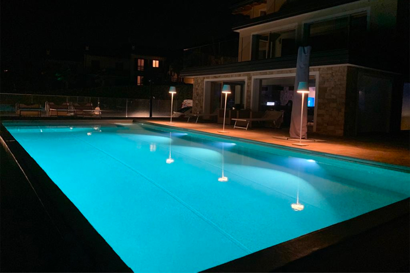 La possibilità di modulare colori e intensità luminosa consente una personalizzazione completa, adattandosi perfettamente allo stile del giardino, alle dimensioni della piscina e al contesto architettonico.